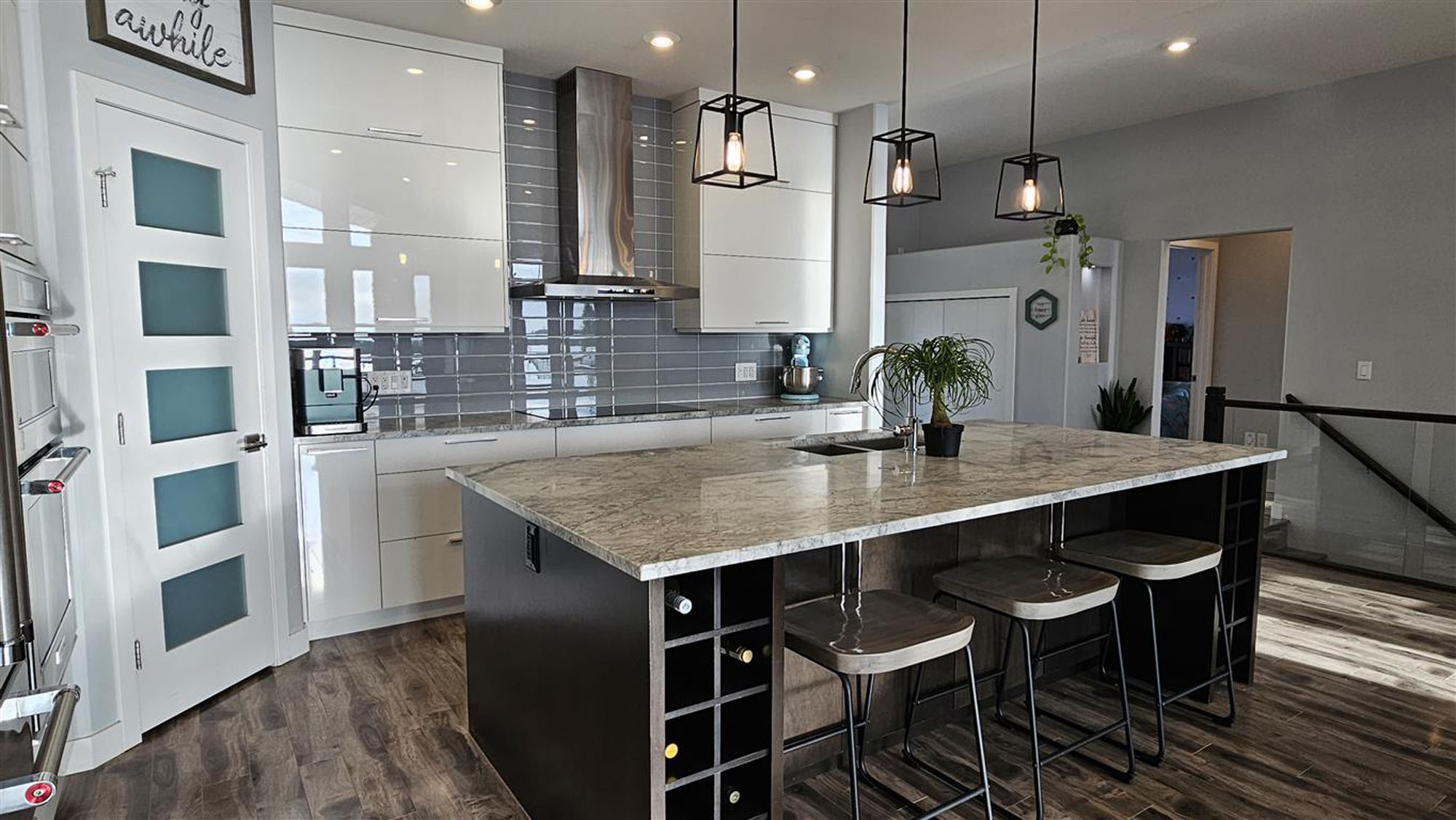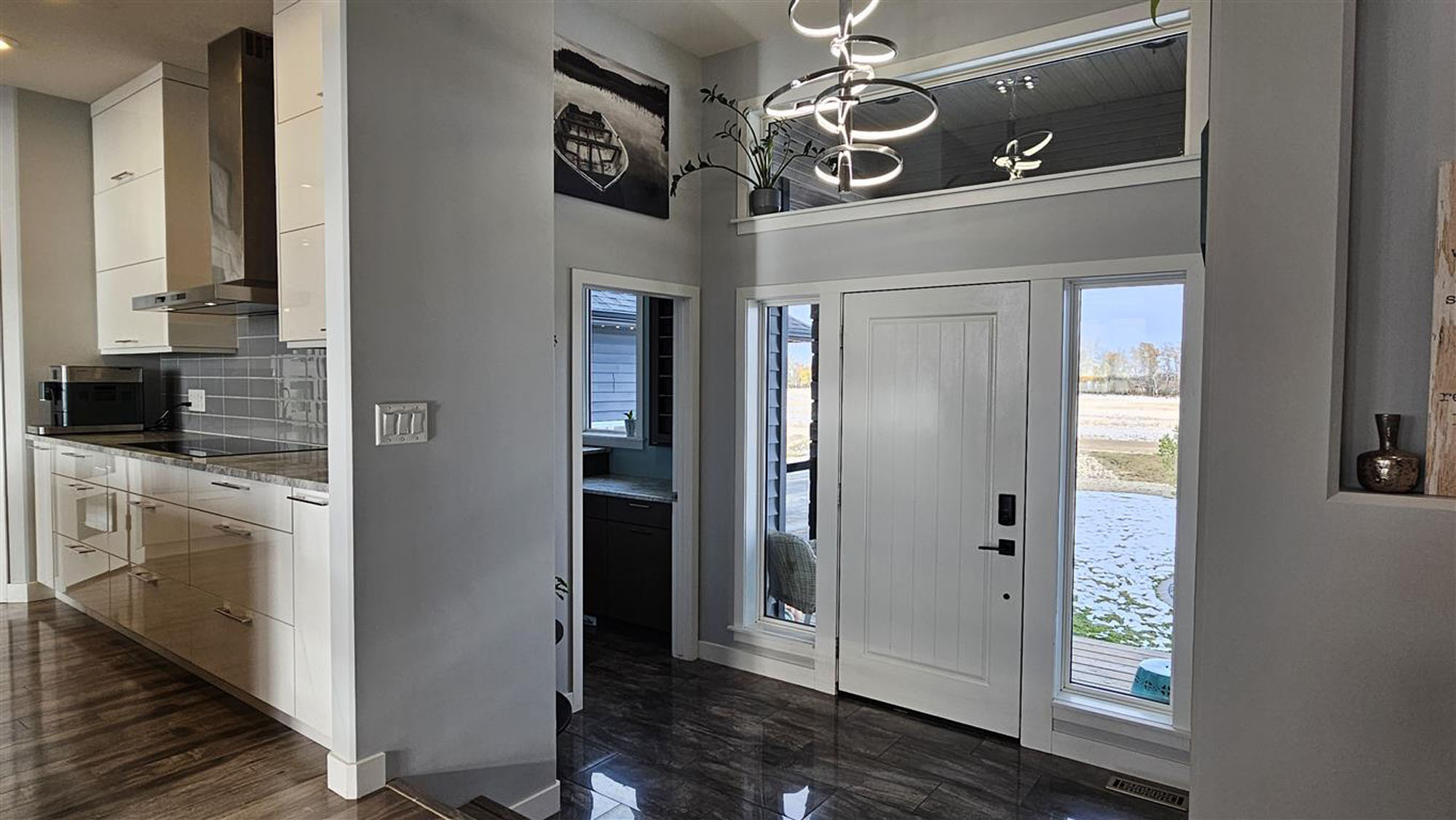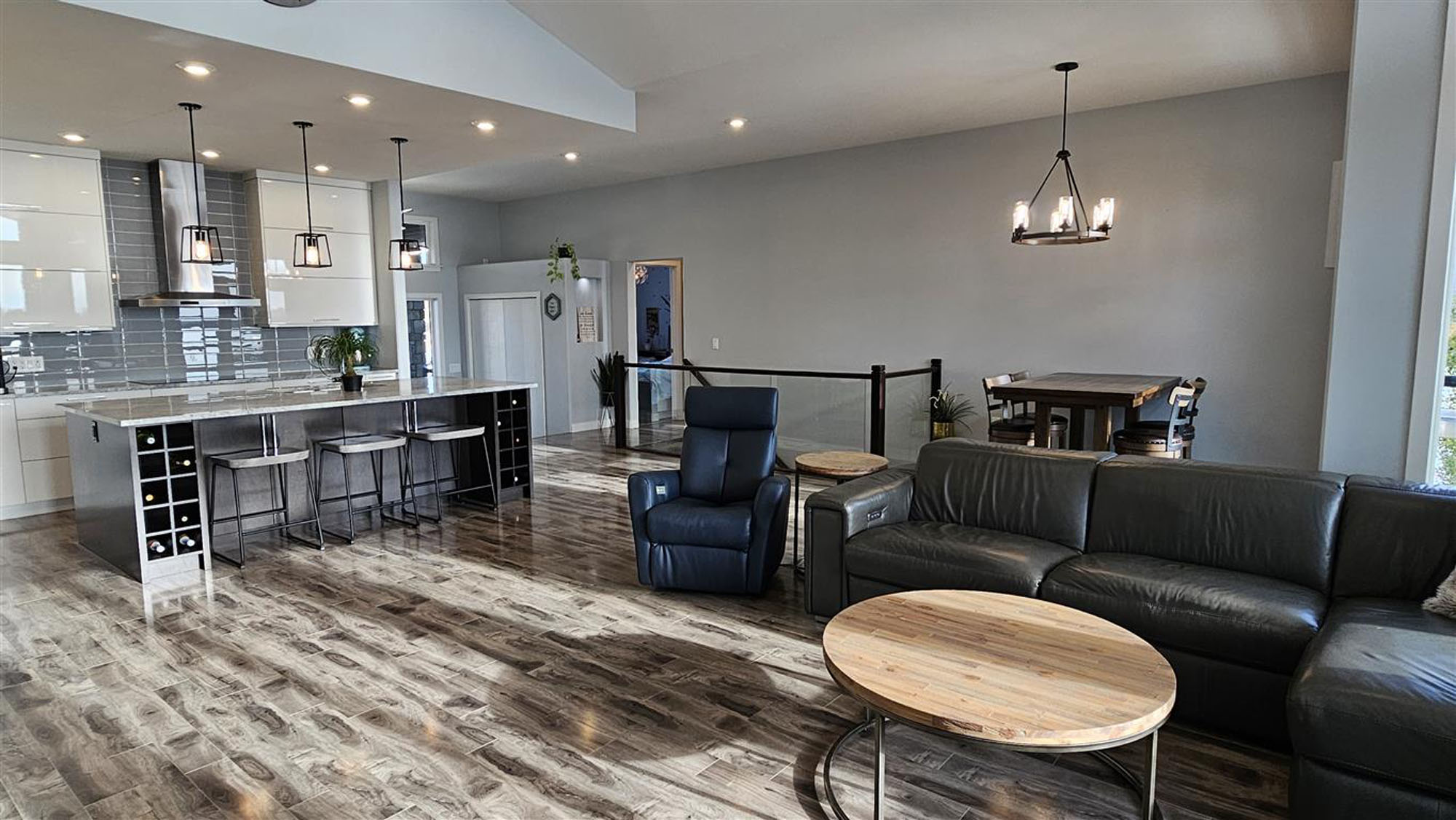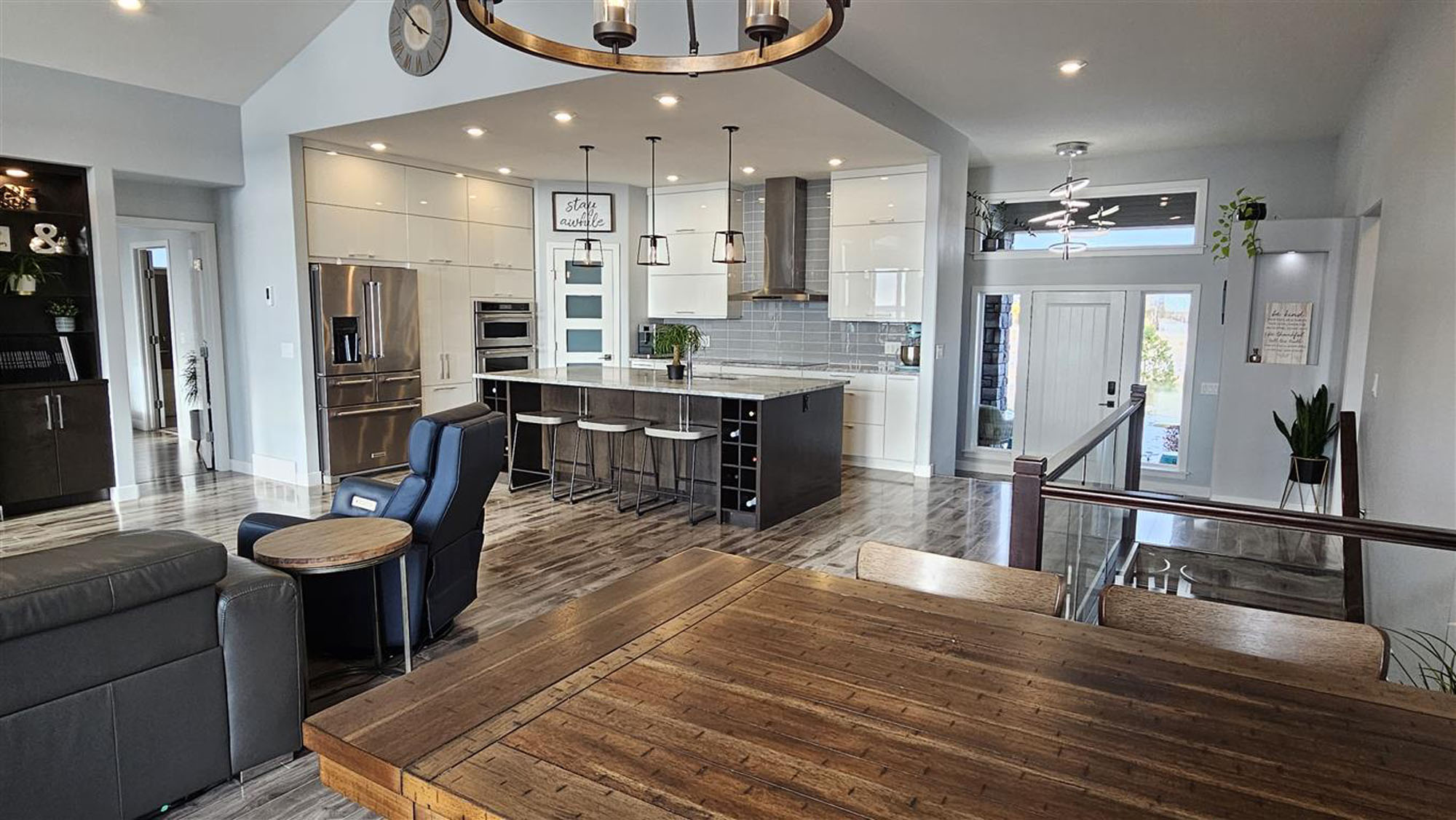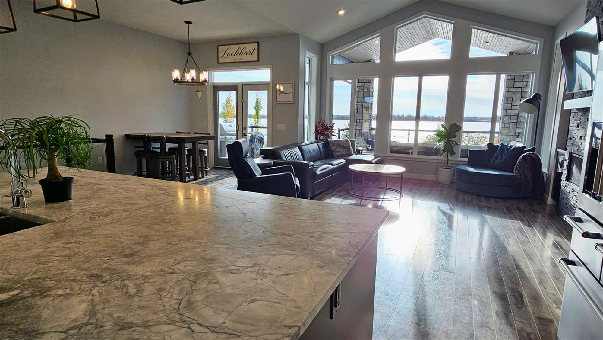 Welcome to this exceptional 1,882 sq. ft. raised bungalow, built in 2016 and perfectly positioned on the waterfront at Humboldt Lake. This high-end 5-bedroom, 3-bathroom home showcases exceptional craftsmanship, timeless finishes, and modern comfort throughout. The main floor offers an inviting open-concept layout featuring custom cabinetry, granite countertops, and premium KitchenAid appliances centered around a stunning oversized island—ideal for family living and entertaining alike. With three bedrooms on the main level, there’s ample space for families or guests. The primary bedroom ensuite is a true retreat, complete with heated tile floors, a free-standing tub, and a luxurious three-head walk-in shower. The fully finished lower level is designed for entertaining, featuring a custom wet bar with island, bar fridge, and built-in ice maker. The home is Ethernet wired throughout and includes Starlink internet, Gemstone exterior lighting, central vac with dustpan kicks, and a large heated garage. Step outside to enjoy a beautifully landscaped yard with underground sprinklers, a two-tier deck with enclosed storage, stone patio and firepit, natural gas BBQ and fire table hookups, and a 20’ Koenders dock ready for lakeside living. The adjacent municipal greenspace ensures lasting privacy and unobstructed views—no future neighbours. This property truly offers it all—luxury, privacy, and the perfect lakefront lifestyle. A must-see!